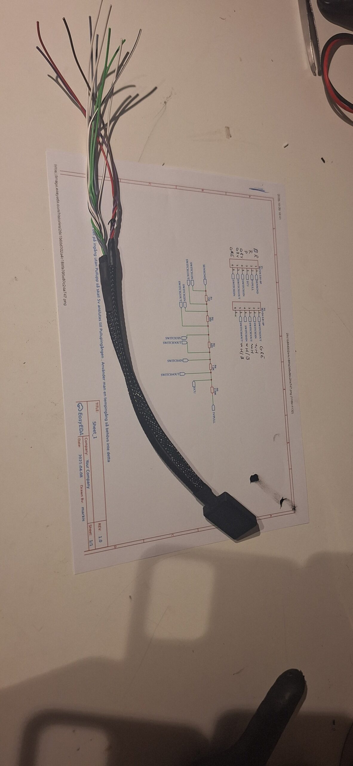 300mm long pigtails made from 0,5mm2 FLRY wire (same as in the maxx harnesses)